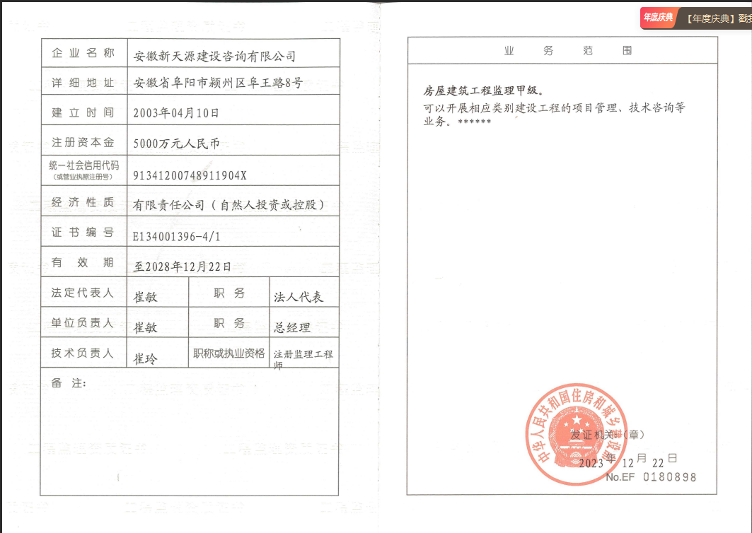 工程監理資質乙級
